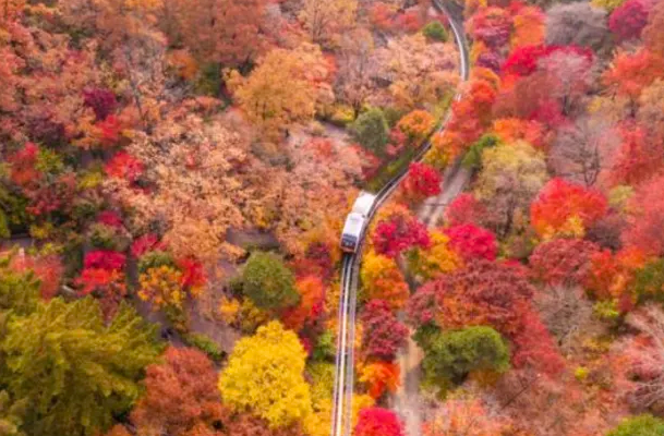 1승강장에서 타고 2승강장(정상)에서 내려서 걸어 내려오는 코스를 추천해요! 올라갈 때는 편하게 모노레일로, 내려올 때는 단풍을 감상하며 천천히 걷는 게 가장 이상적이에요. 체력이 부담되시는 분들은 순환권을 구매해서 20분 동안 계속 타고 경치를 즐기셔도 좋아요!