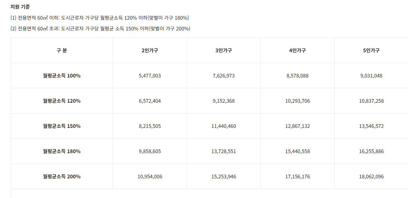 ✅ 도시근로자 월평균소득 120% 이하 (맞벌이 180%)