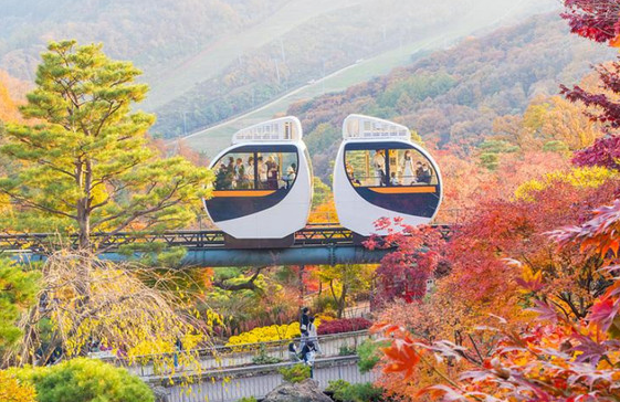 1승강장에서 타고 2승강장(정상)에서 내려서 걸어 내려오는 코스를 추천해요! 올라갈 때는 편하게 모노레일로, 내려올 때는 단풍을 감상하며 천천히 걷는 게 가장 이상적이에요. 체력이 부담되시는 분들은 순환권을 구매해서 20분 동안 계속 타고 경치를 즐기셔도 좋아요!